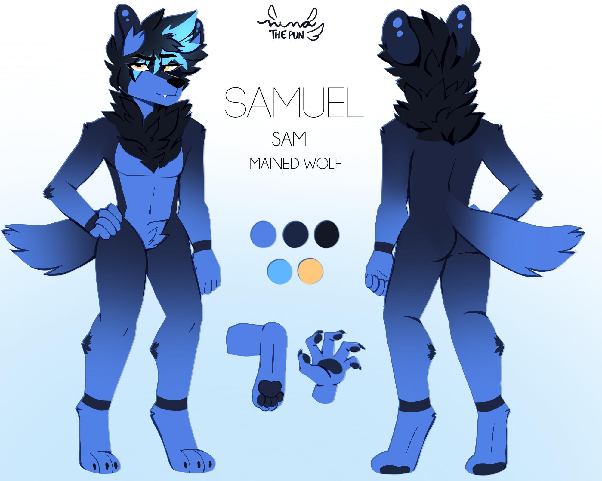 Samuel or "Sam" Is a blue mained wolf. Sam is genderfluid and is comfortable with any pronouns. He's straightforward, truthful and grumpy, but can also be a very loyal friend once you become close enough.